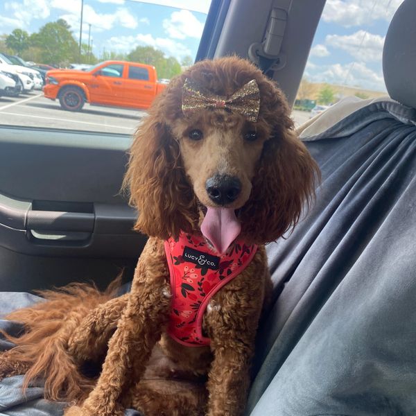 Chai is our smart and attentive red girl! Chai aims to please, loves affection (especially behind her ears) This girl is always HAPPY and confident! Chai is a great mommy to her puppies